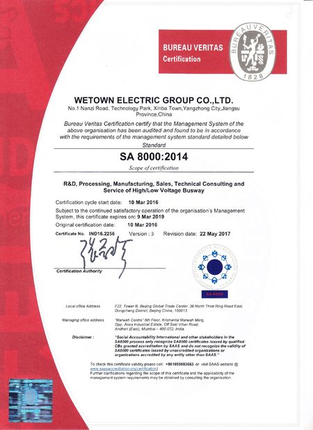 Λάβαμε την πιστοποίηση έξι συστημάτων διαχείρισης. Με τις προηγμένες διοικητικές έννοιες και τις ιδέες, Wetown ηλεκτρικό συνεχώς βελτιώνει το επίπεδο διοίκησης επιχειρήσεών του. Είμαστε η πρώτη επιχείρηση στη βιομηχανία για να λάβουμε έξι συστήματα πιστοποίησης, συμπεριλαμβανομένης της πιστοποίησης σειράς του ISO, της πιστοποίησης κοινωνικής ευθύνης SA8000, της πιστοποίησης συστημάτων αξιολόγησης υπηρεσιών μεταπωλήσεων GB/T και πιστοποίησης πνευματικής ιδιοκτησίας GB/T29490 της διοικητικής.